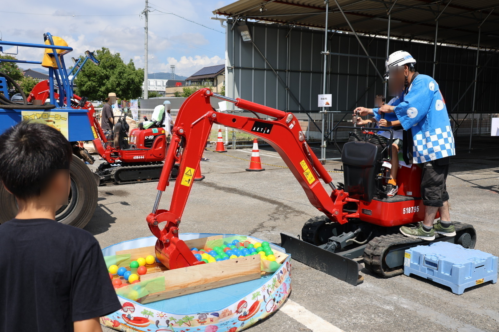 また、パワーショベルの搭乗体験や銀行員になりきるコーナーでは、普段できない体験に目を輝かせていました。